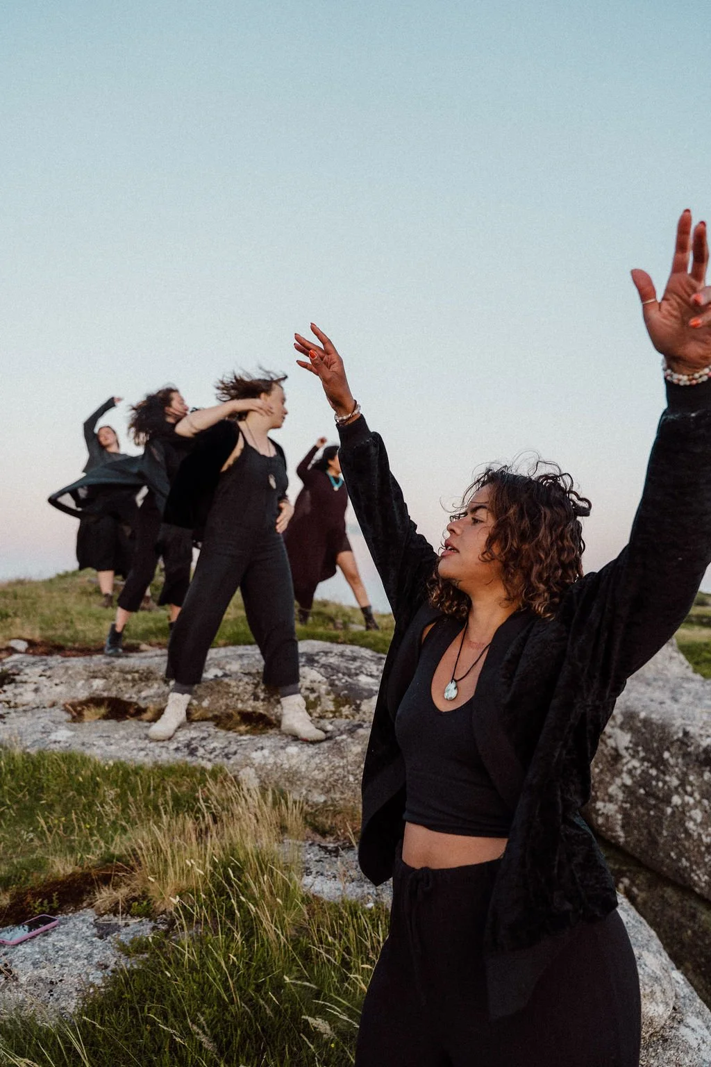 Grief tending, relational skills, contact improvisation, peer-led learning, seasonal ritual, singing, experiential group-work, performance.